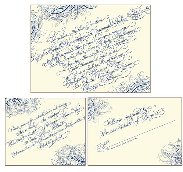 Custom Hand CalligraphyLetterpress Invitation Suite (click to enlarge) ![]() Wedding Invitation Custom Calligraphy (click to enlarge) | ![]() |