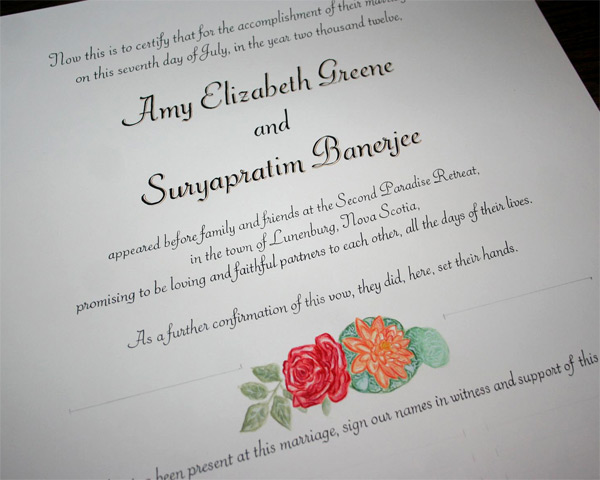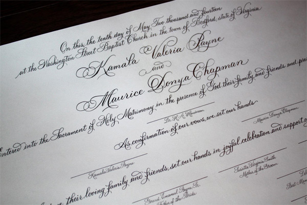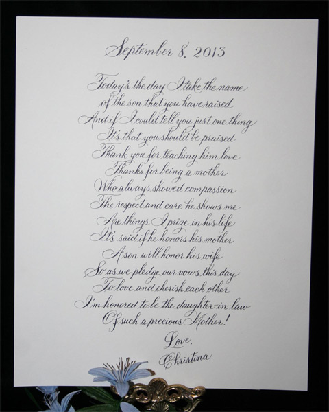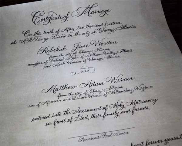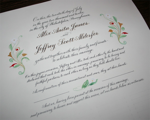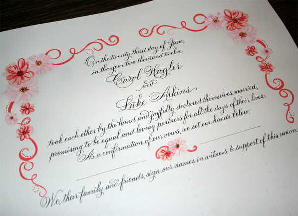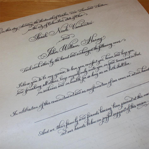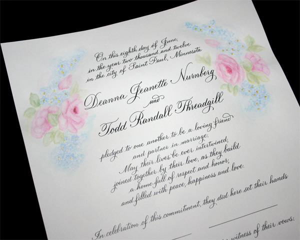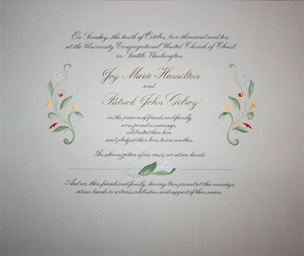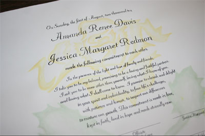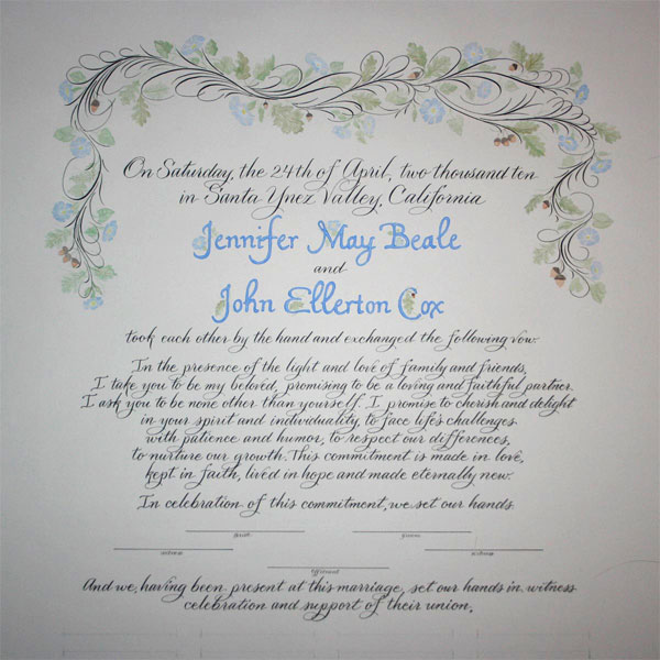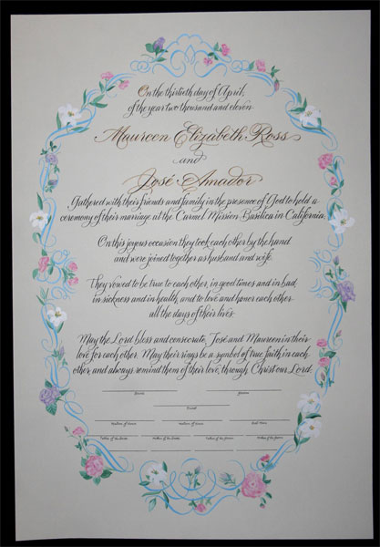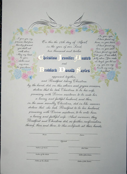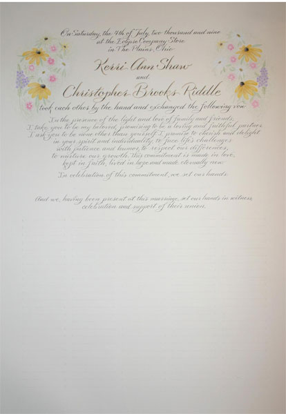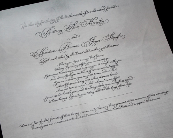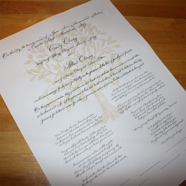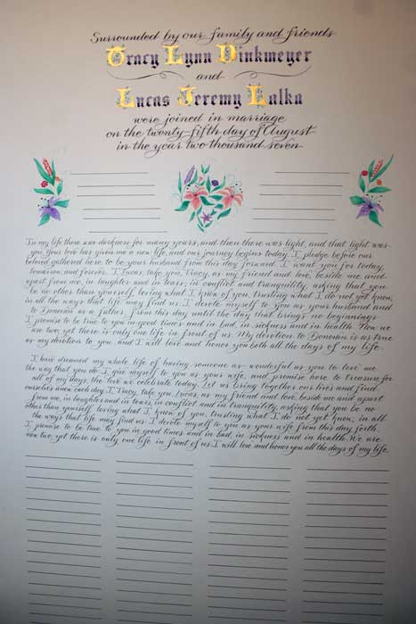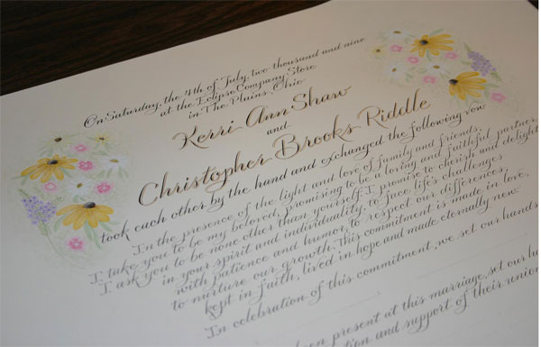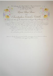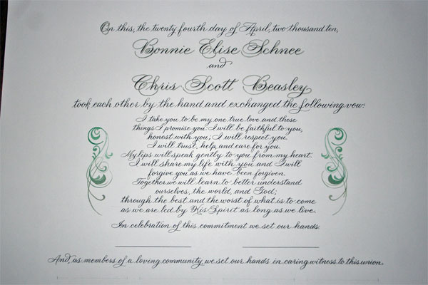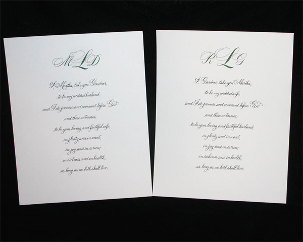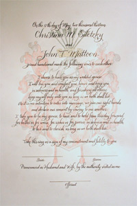 ![]() Wedding Vows in Calligraphy (click to enlarge) |
