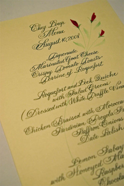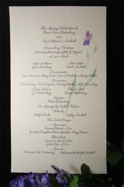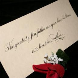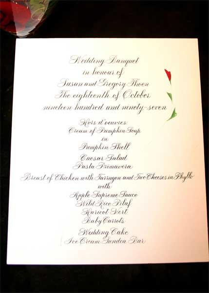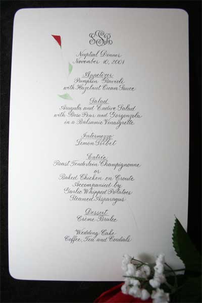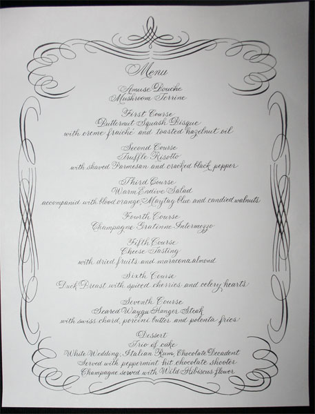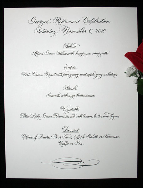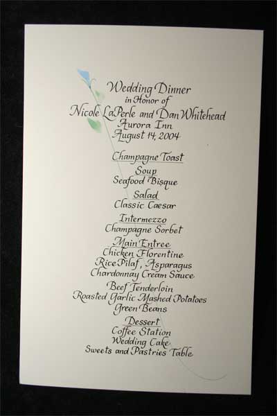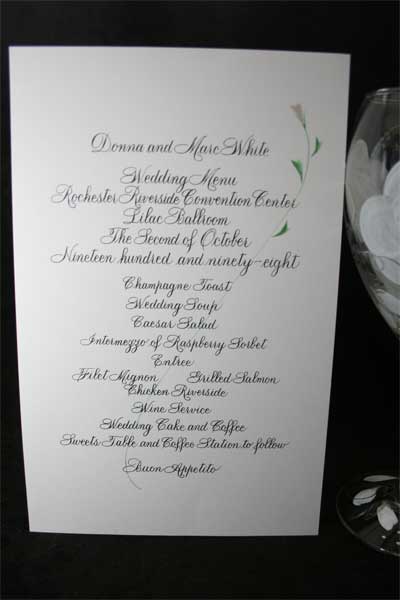 Hand Rendered Calligraphy will add that Extra Touch of Elegance to your Programs or Dinner Menus