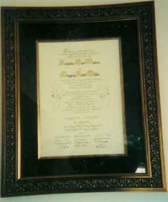 Marriage Certificate Signed & Framed (click to enlarge) | ||